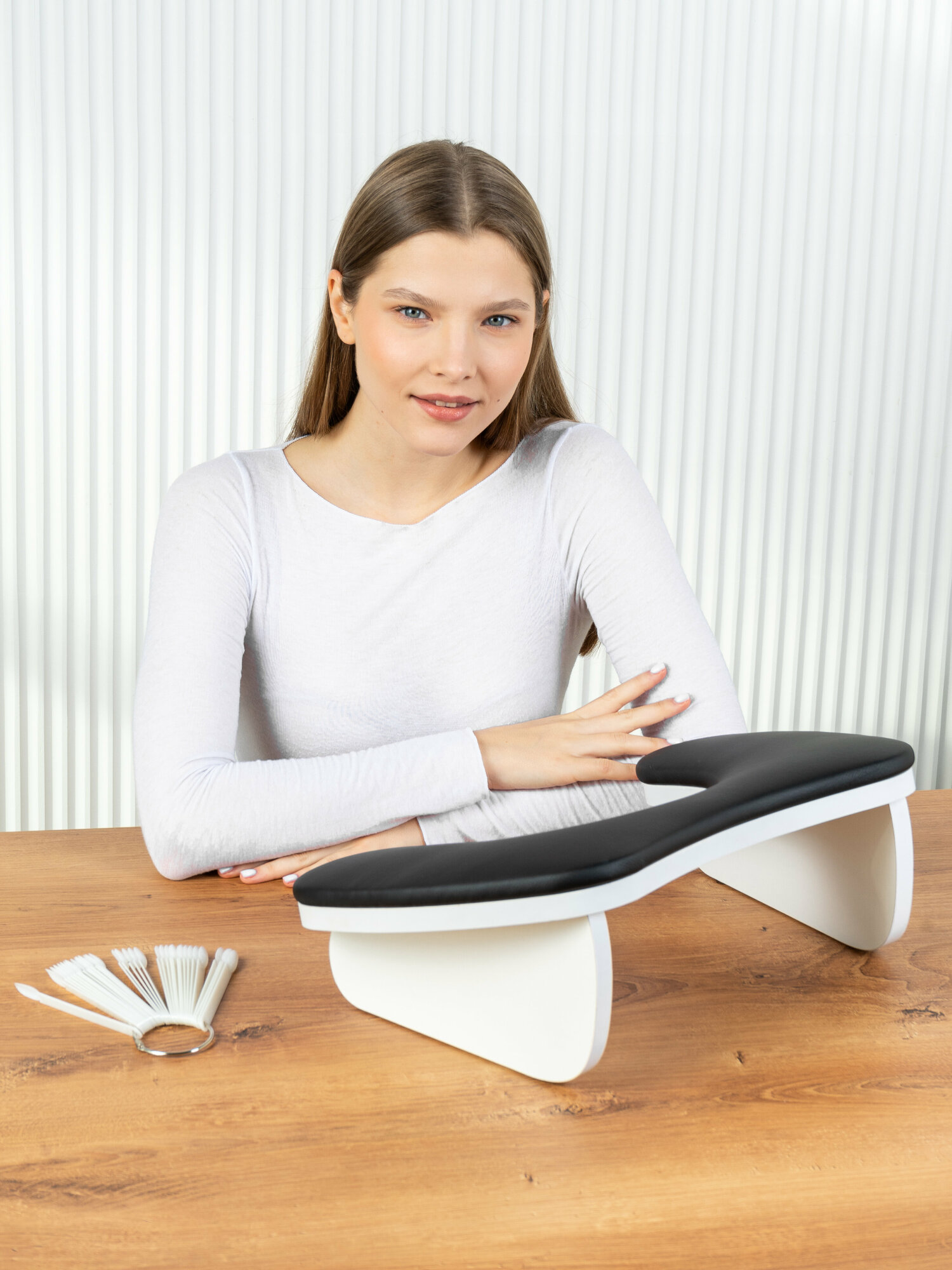 Подставка для маникюра Бабочка орех с белым ровные ноги