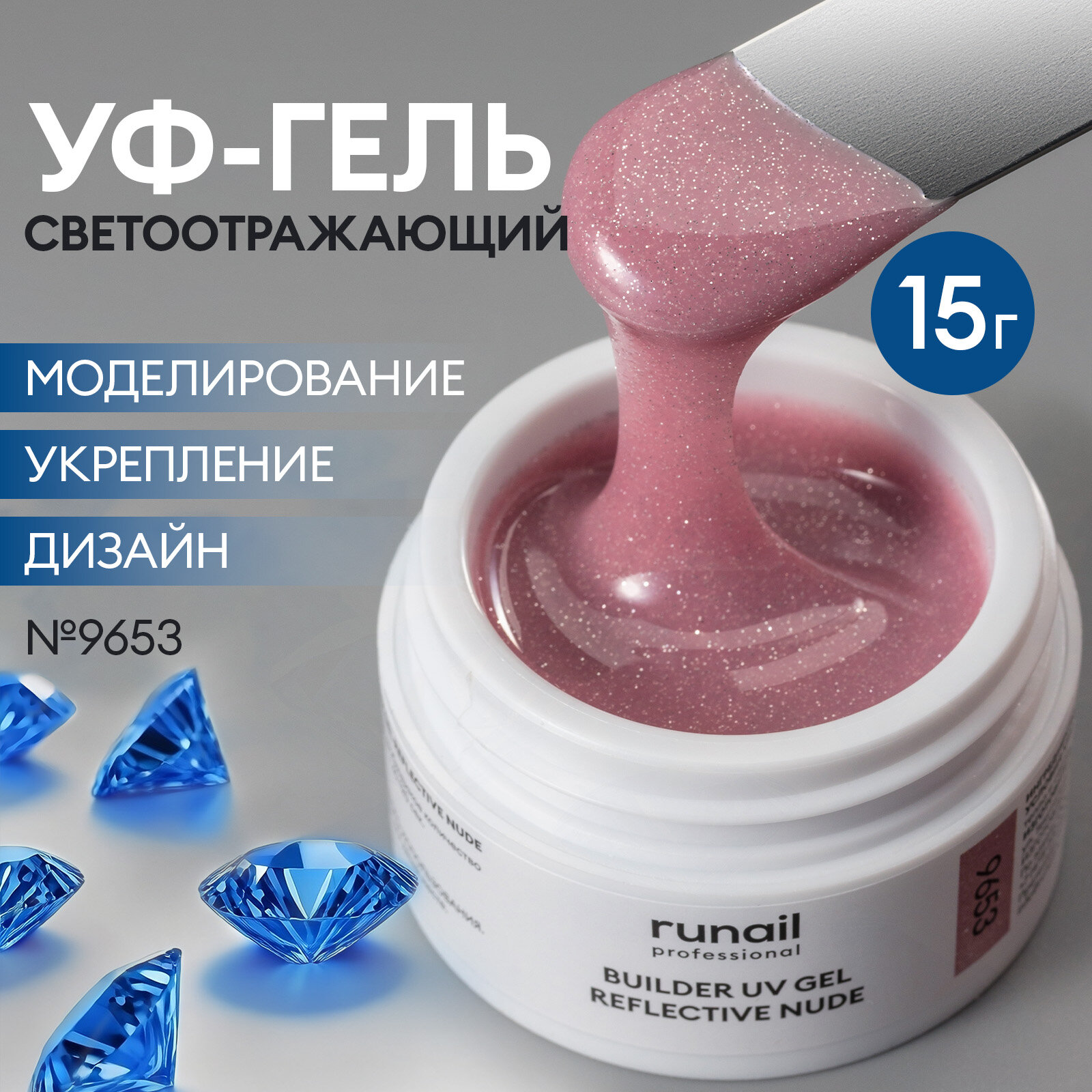 Купить УФ-гель моделирующий светоотражающий для маникюра и педикюра REFLECTIVE NUDE 15 г, №9653
