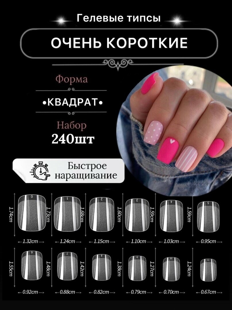 Короткие гелевые типсы Квадрат 240 шт. интересное: