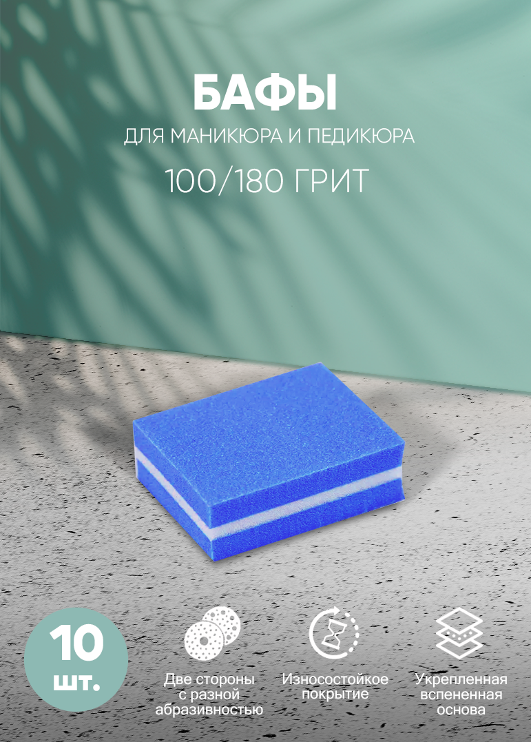 Lian Beauty Accessories Набор мини бафов для ногтей 100/180 синий, 10 шт. интересное: