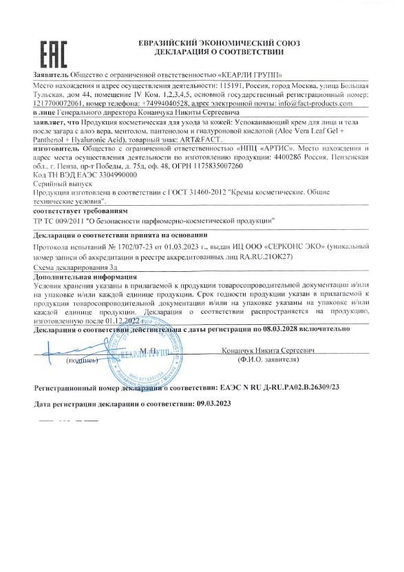 Купить ART&FACT. /Успокаивающий крем для лица и тела после загара, 150 мл