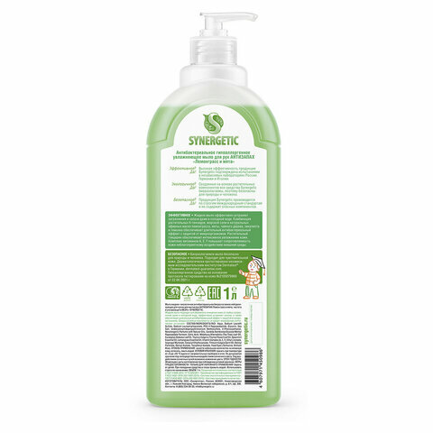 Мыло жидкое Synergetic антибактериальное, Лемонграсс и мята, 500 мл (105059)