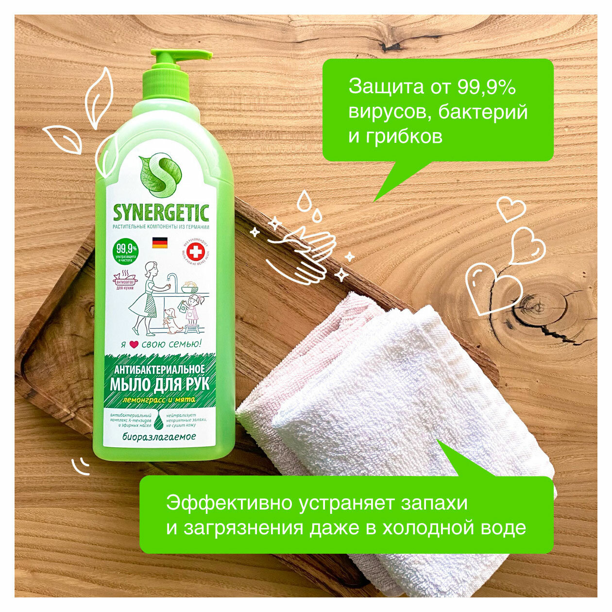 СохранитьМыло жидкое Synergetic «Лемонграсс и мята», гипоаллергенное, антибактериальное, 1 л интересное: