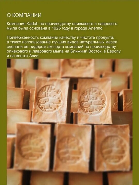 | Состав | Оливковое масло, лавровое масло 20%, щёлочь, вода |