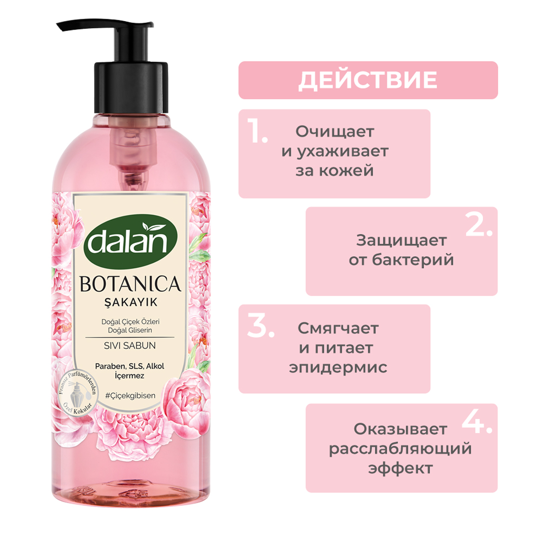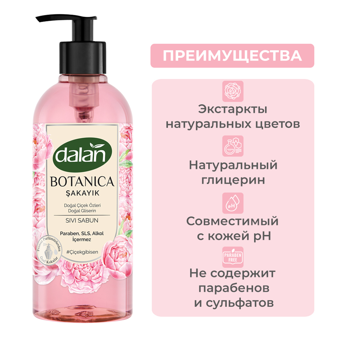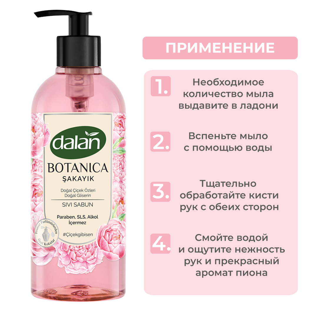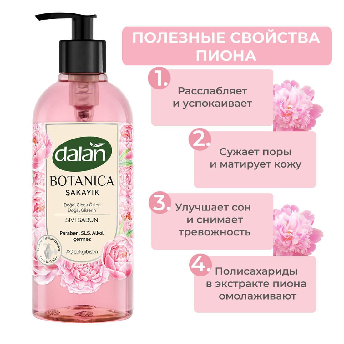 Жидкое туалетное мыло для рук Пион DALAN Botanica, увлажняющее и натуральное, 500 мл интересное:
