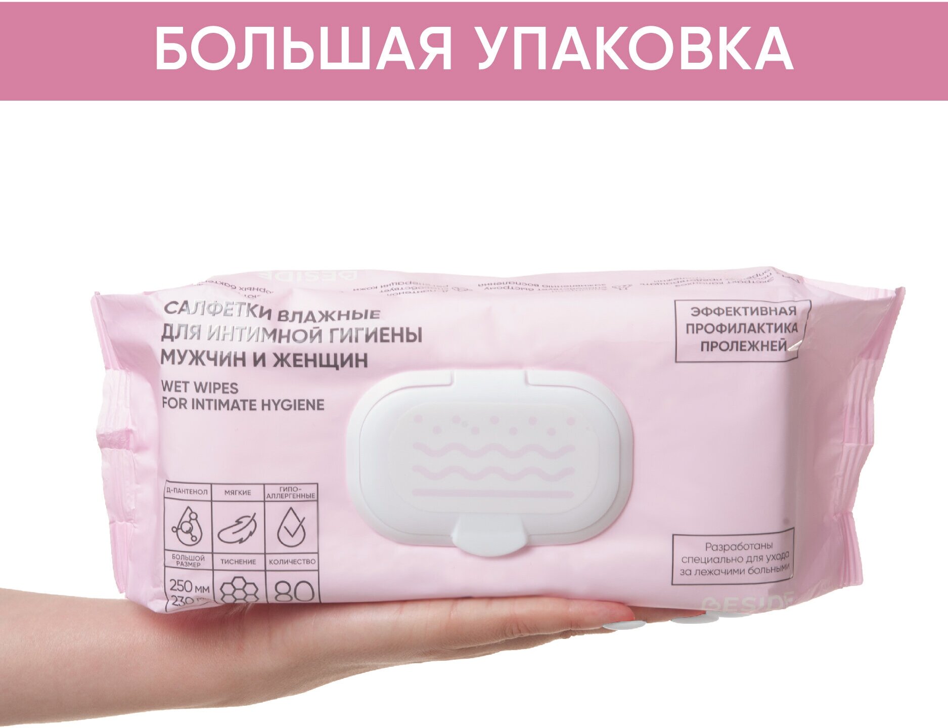 Влажные гигиенические салфетки для интимной гигиены BESIDE большие 25х23, 80шт, полотенца, флоупак с клапаном интересное: