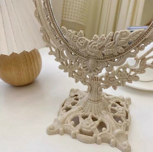 Зеркало настольное косметическое плешоп для макияжа овальное, в винтажном стиле, бежевое, 23 см интересное: