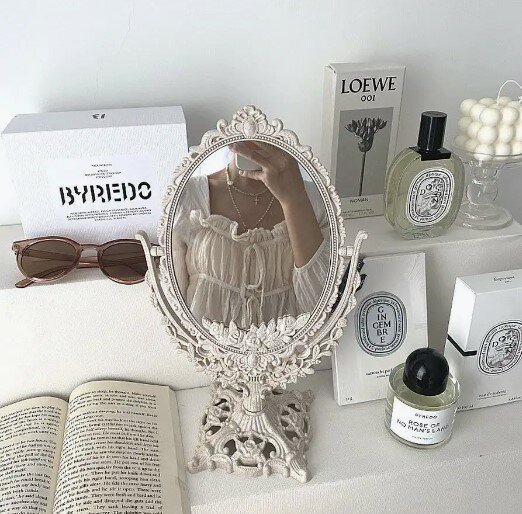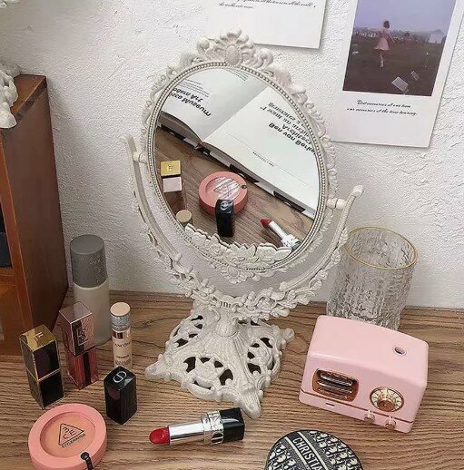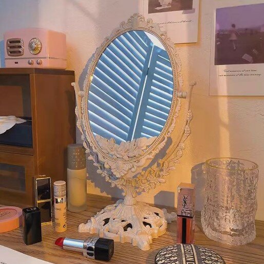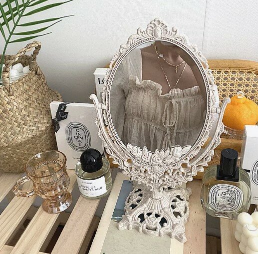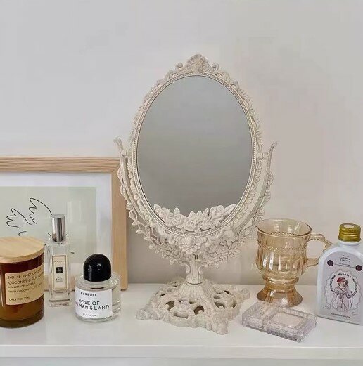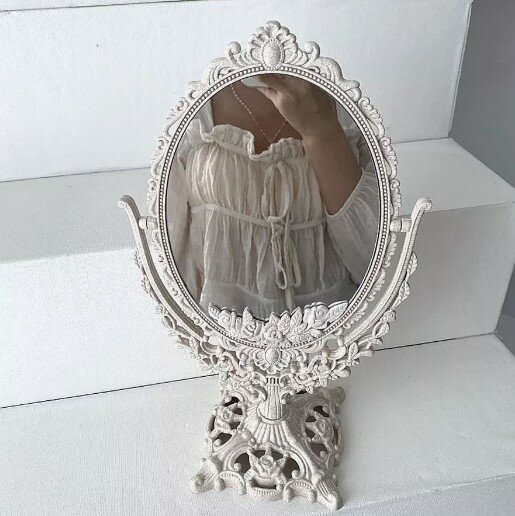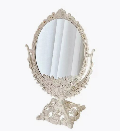 | Дополнительная информация | Можно регулировать наклон зеркала, настольное зеркало на подставке - это прекрасное дополнение к вашему интерьеру и незаменимый предмет для образованной и стильной женщины, ценящей не только свое отражение, но и уют в своем пространстве. |
