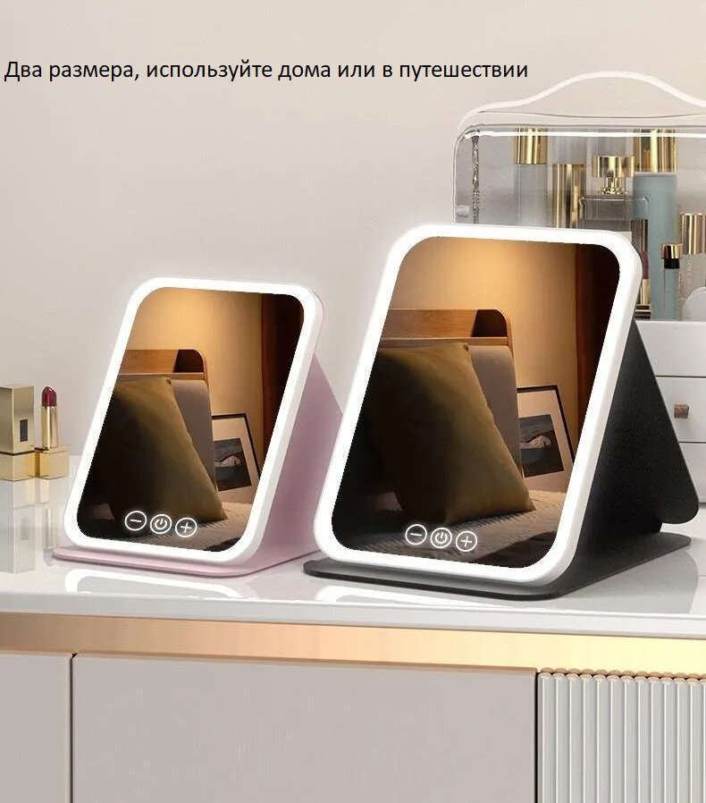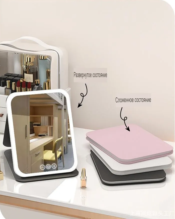 Настольное зеркало с подсветкой и регулировкой высоты интересное: