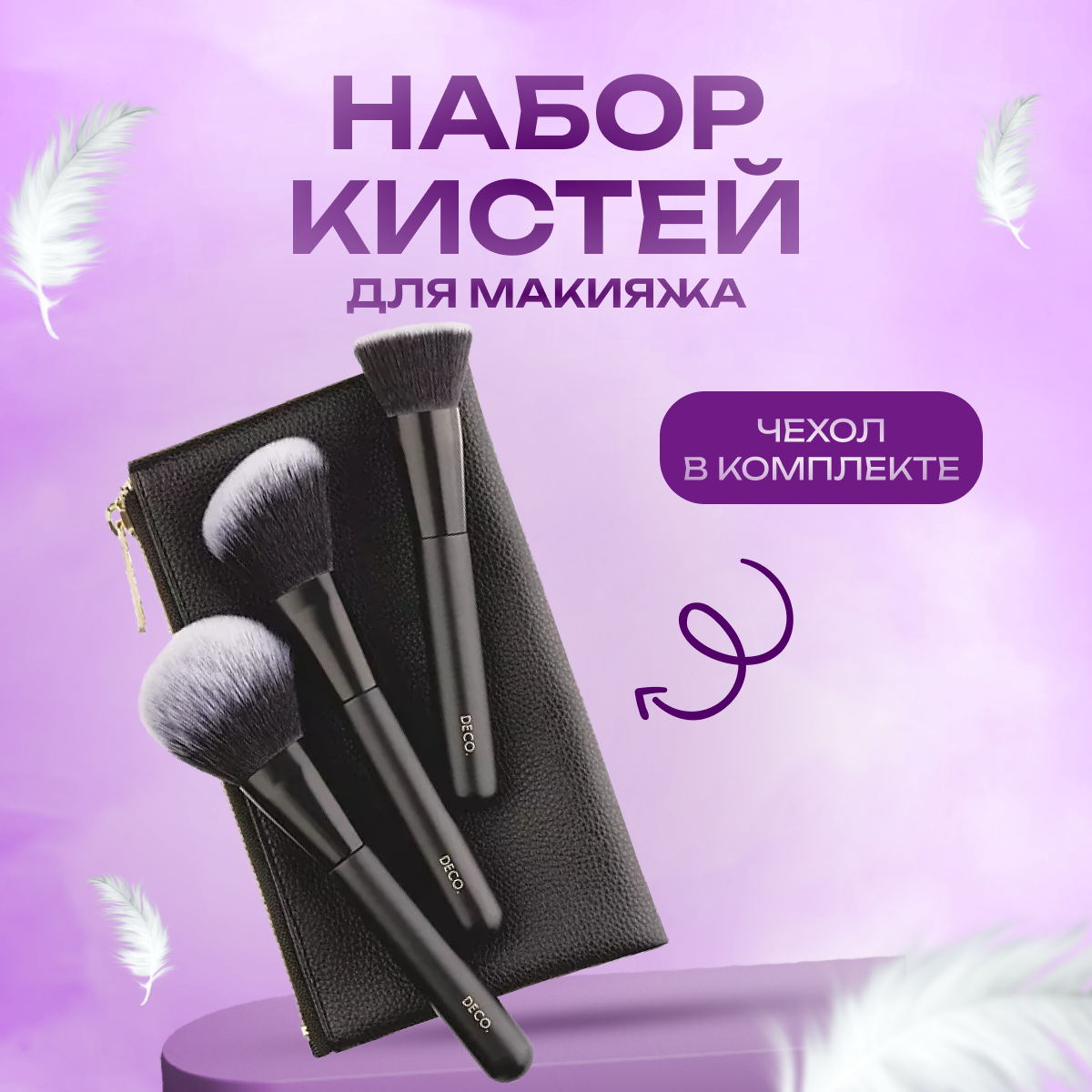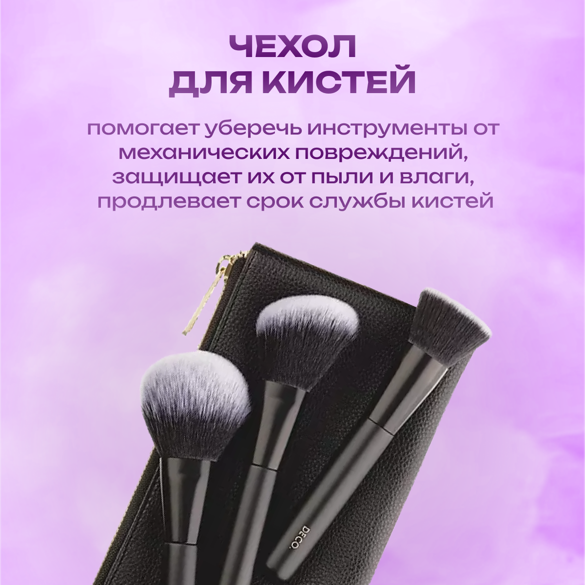 Набор кистей для макияжа лица `DECO.` в чехле 3 шт интересное: