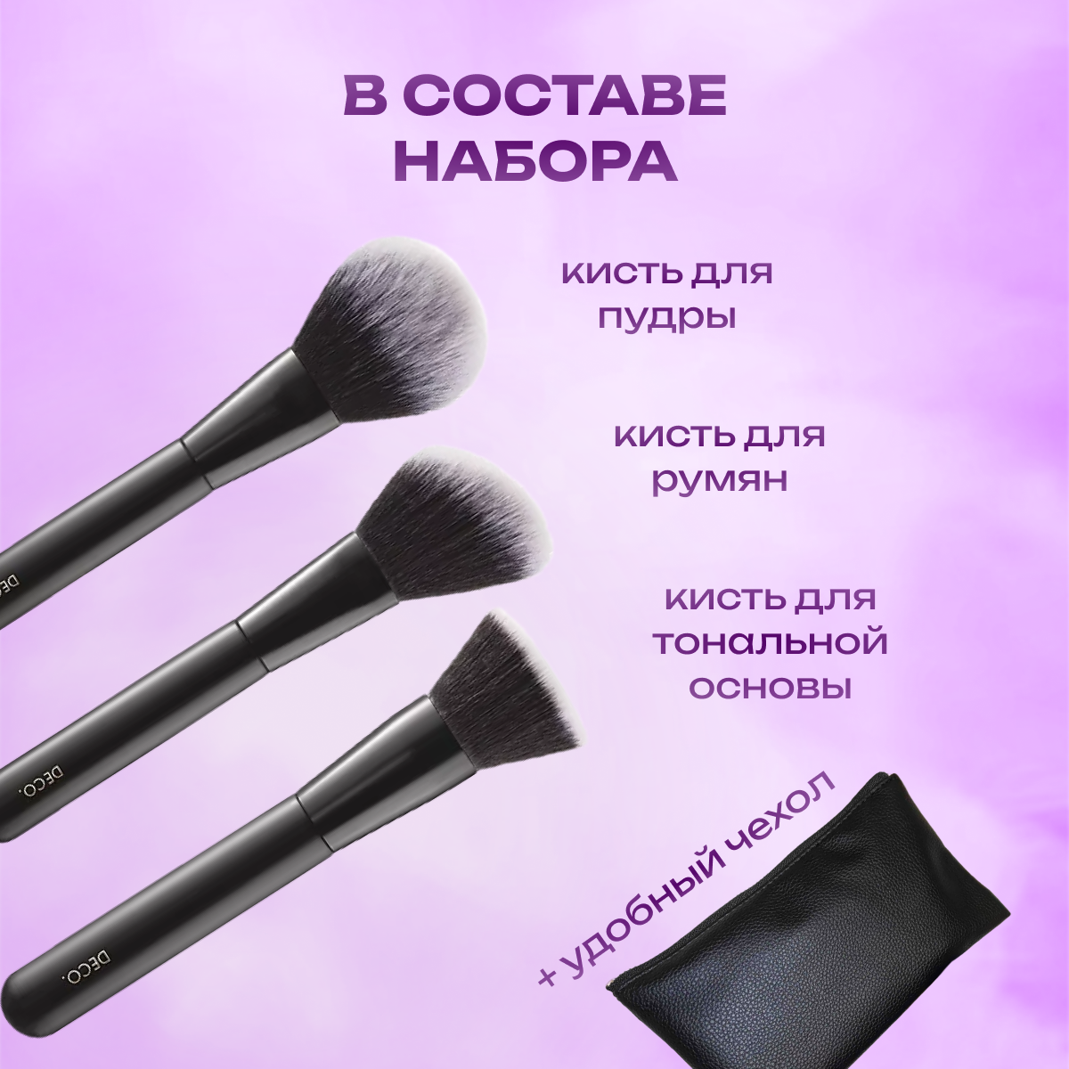 DECO. Набор кистей для макияжа лица DECO. в чехле 3 шт