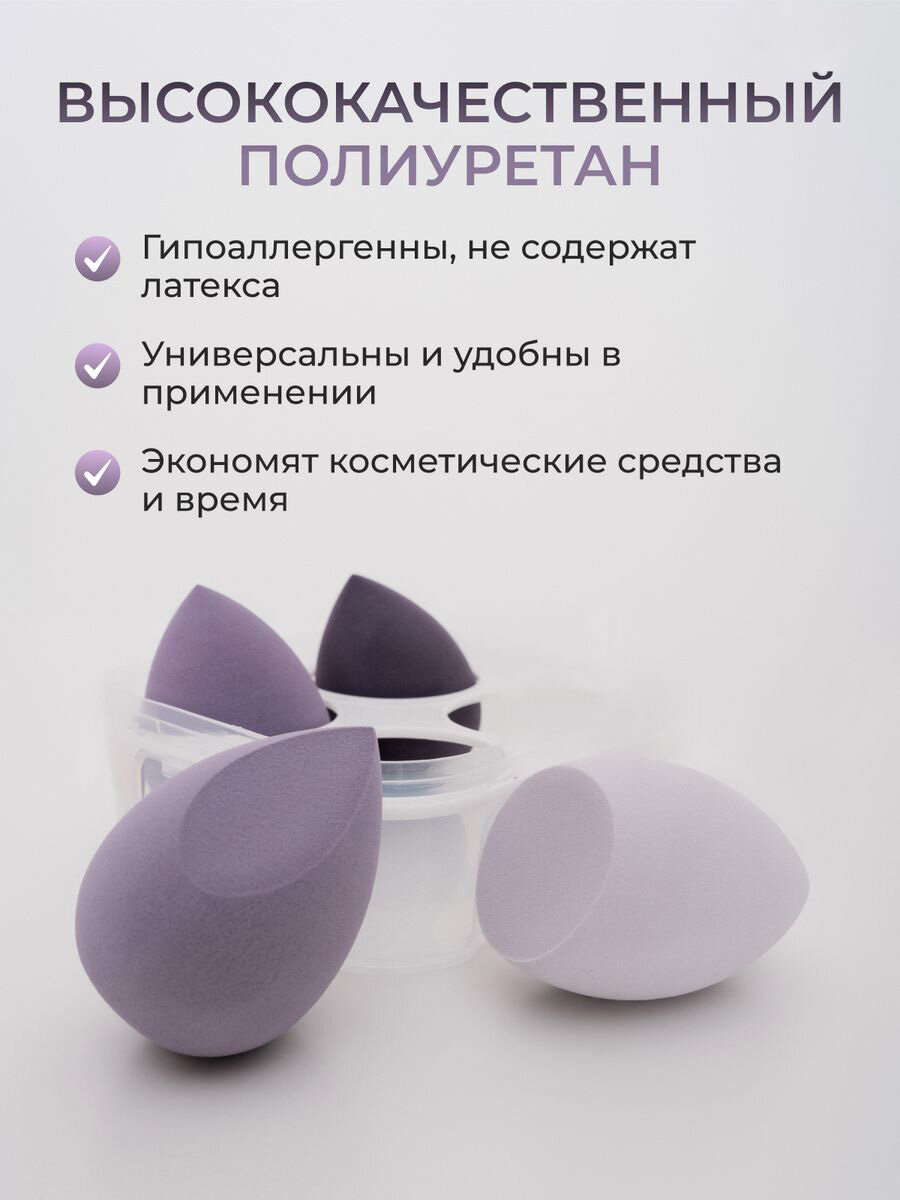 Набор спонжей для макияжа в боксе фиолетовый интересное: