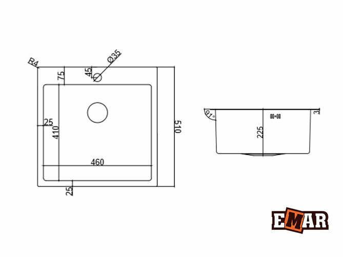 Мойка нержавеющая EMAR 510х510х225 мм EMB-116 PVD Nano Satine