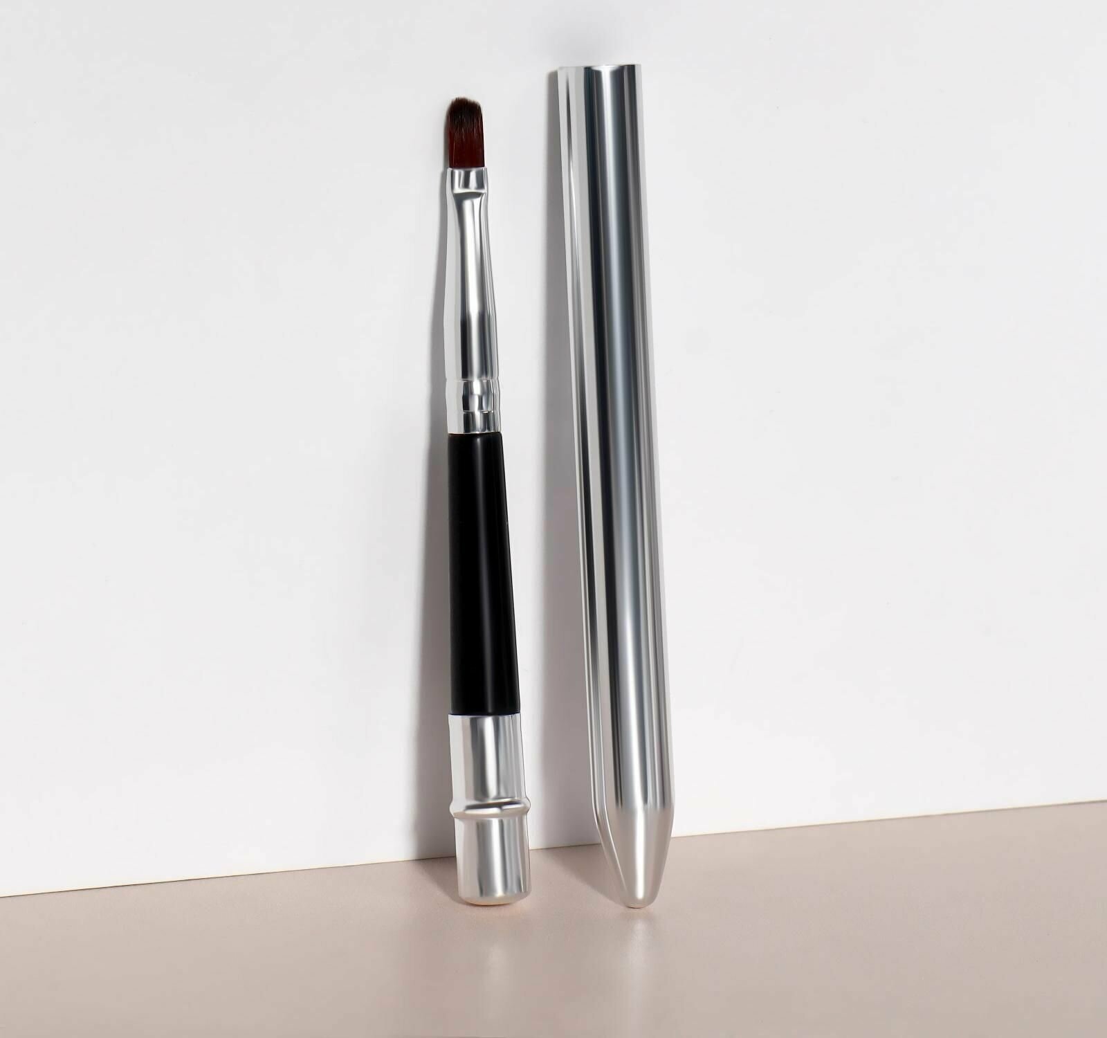 Кисть для макияжа, компактная, 17,5 см, цвет чёрный/серебристый интересное: