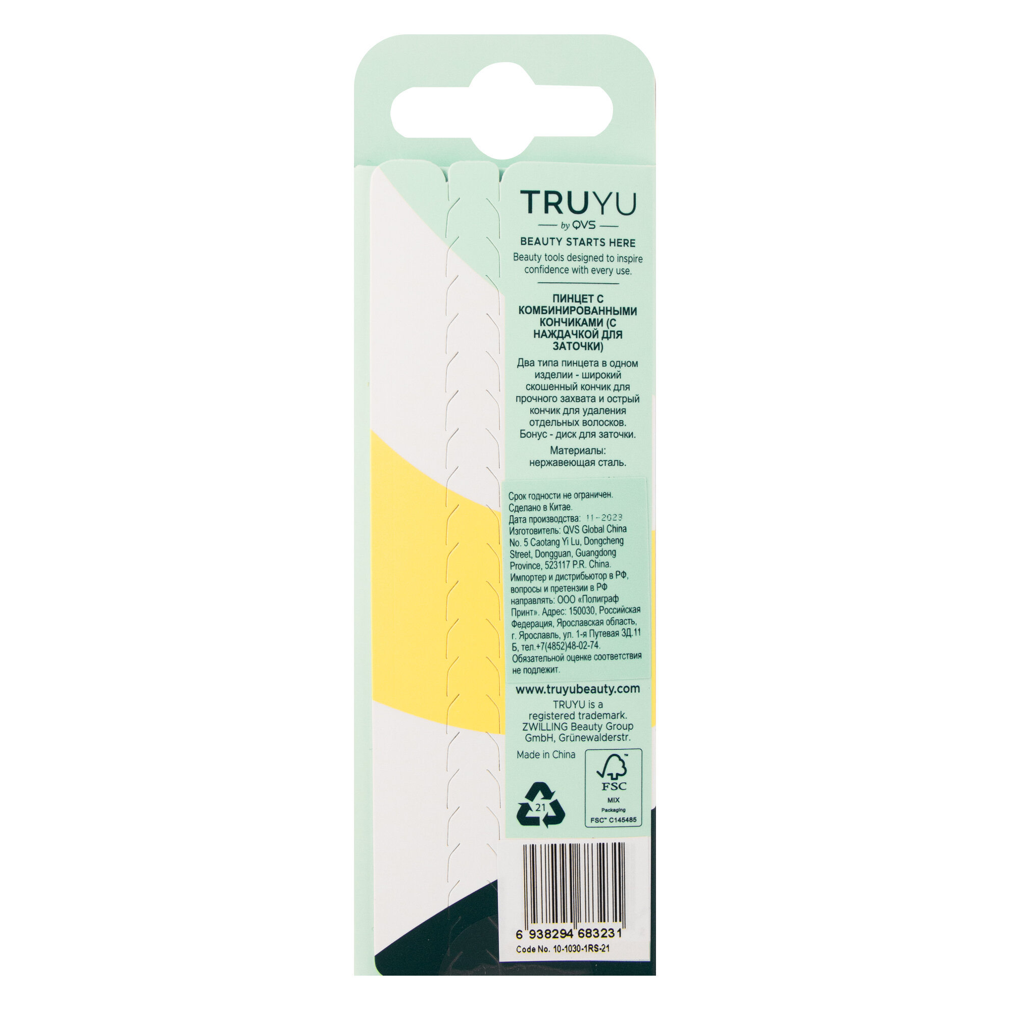 Пинцет со скошенными кончиками , TRUYU,10-1000-1RS-21