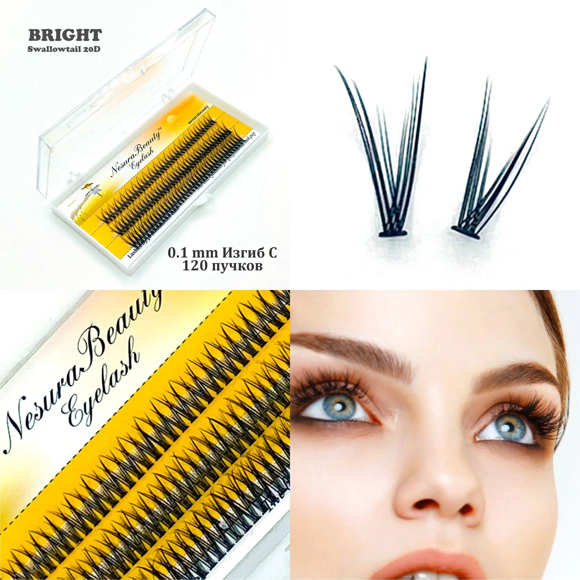 NesuraBeauty / Накладные ресницы пучки "Ласточкин хвост 20D" / Длина: MIX 10 12 14 мм, для макияжа и визажиста интересное: