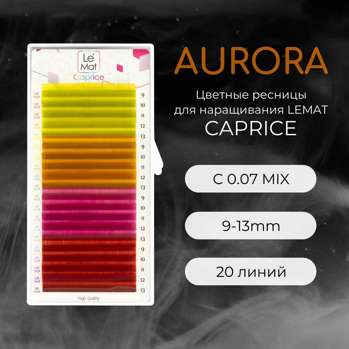 Ресницы для наращивания AURORA C 0.10 9-13 (4) mm "Caprice" 20 линий mix Le Maitre / Le Mat (Ле Мат / цветные микс)