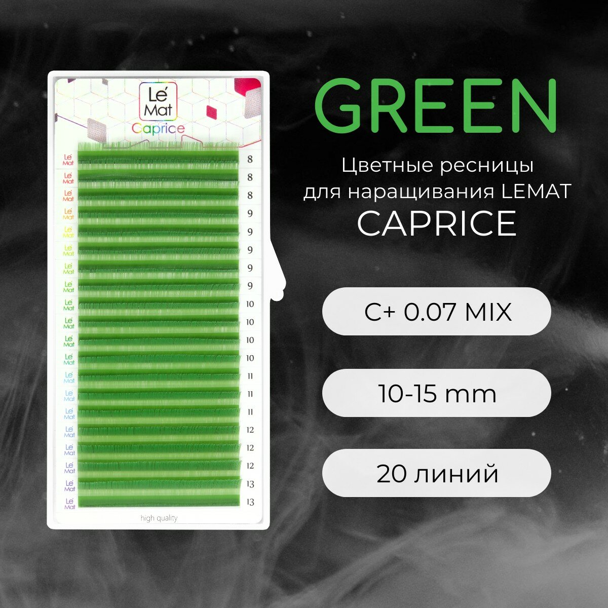 Купить Ресницы для наращивания GREEN C+ 0.07 10-15 mm "Caprice" 20 линий mix Le Maitre / Le Mat (Ле Мат / зеленый микс цветные)
