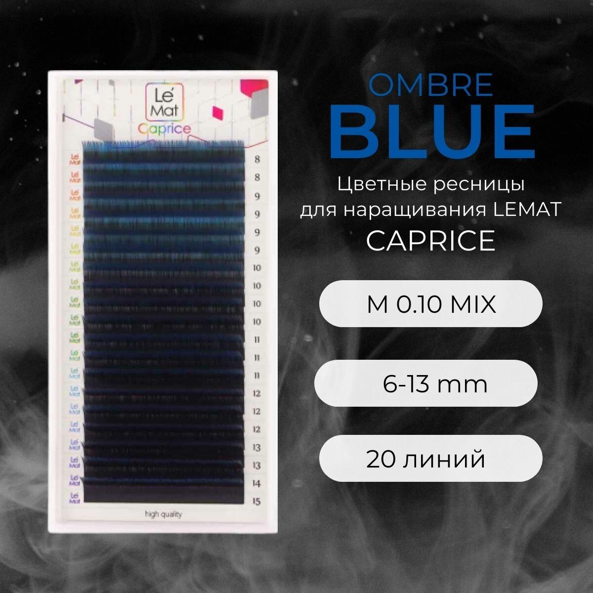 Ресницы для наращивания BLUE M 0.10 8-15 mm "Caprice" 20 линий mix Le Maitre / Le Mat (Ле Мат / синий микс цветные)