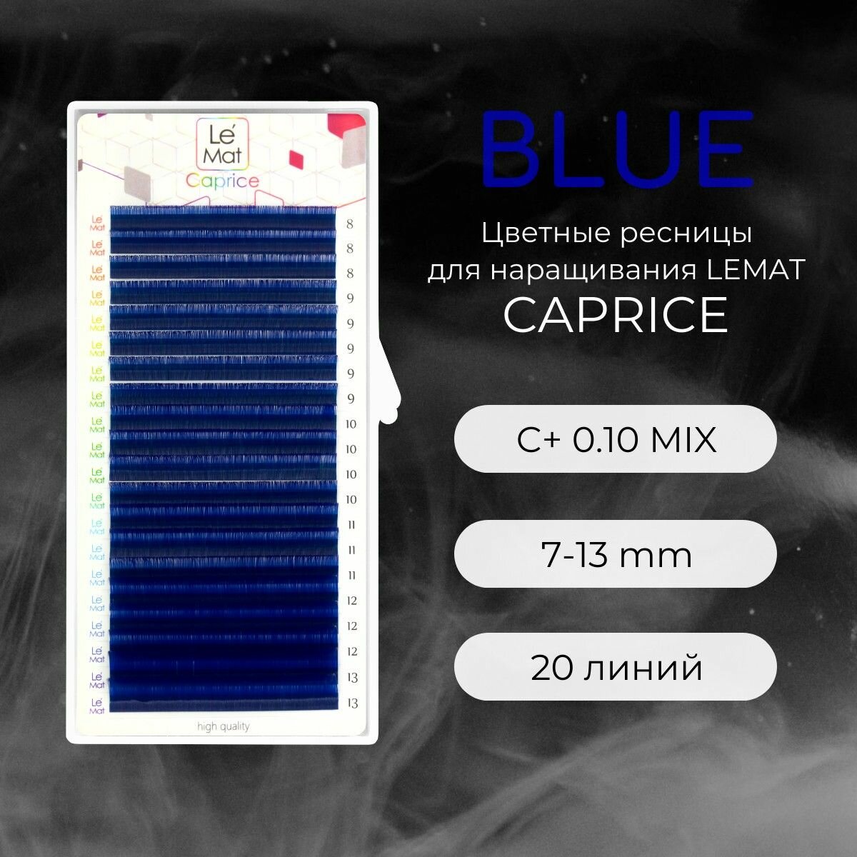 Ресницы для наращивания BLUE C+ 0.10 8-13 mm "Caprice" 20 линий mix Le Maitre / Le Mat (Ле Мат / синий микс цветные)