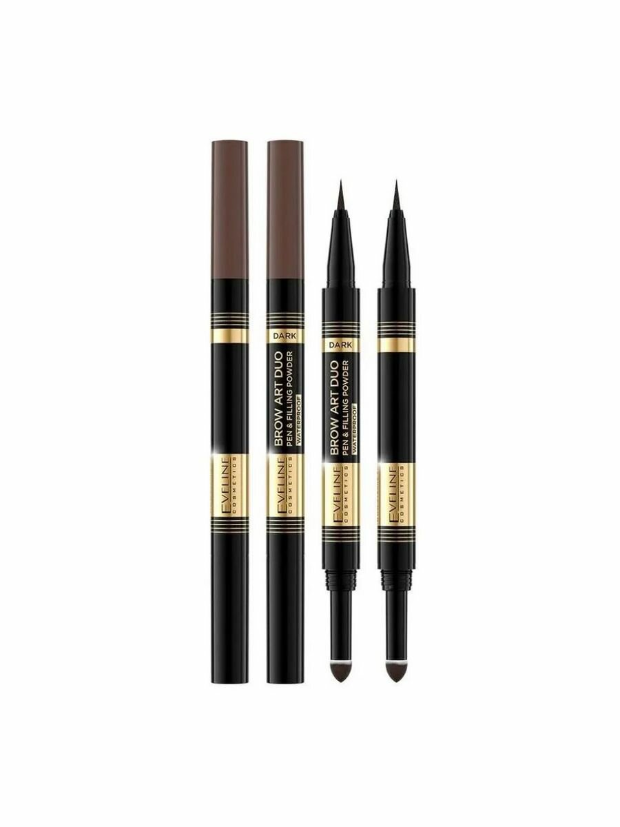 Ультратонкий водостойкий маркер и пудра для бровей EVELINE brow art duo, тон 03 dark