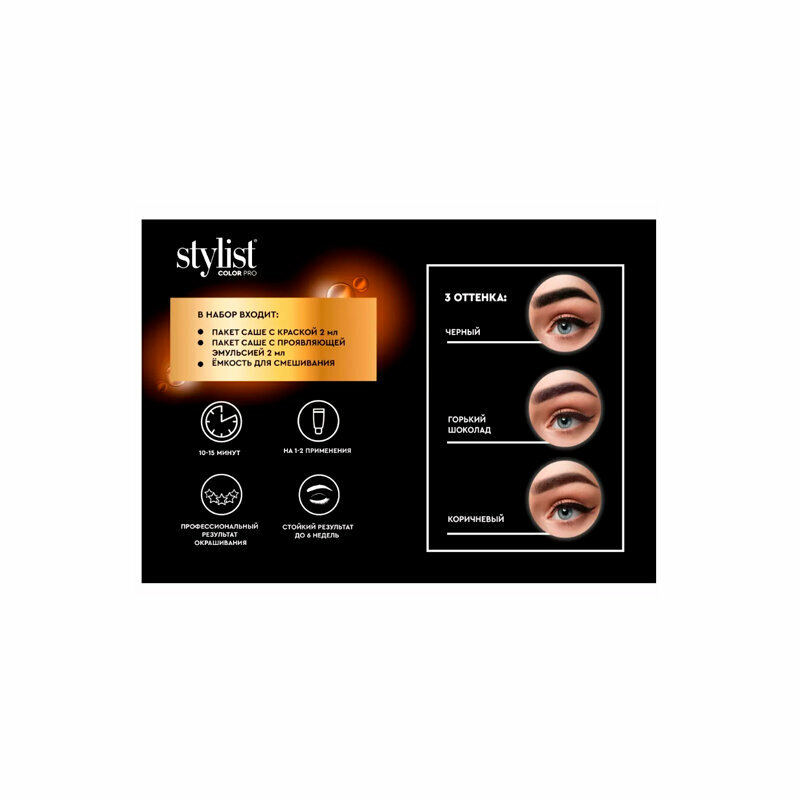 Купить Stylist Pro краска для бровей и ресниц кератиновая, горький шоколад, 4 мл