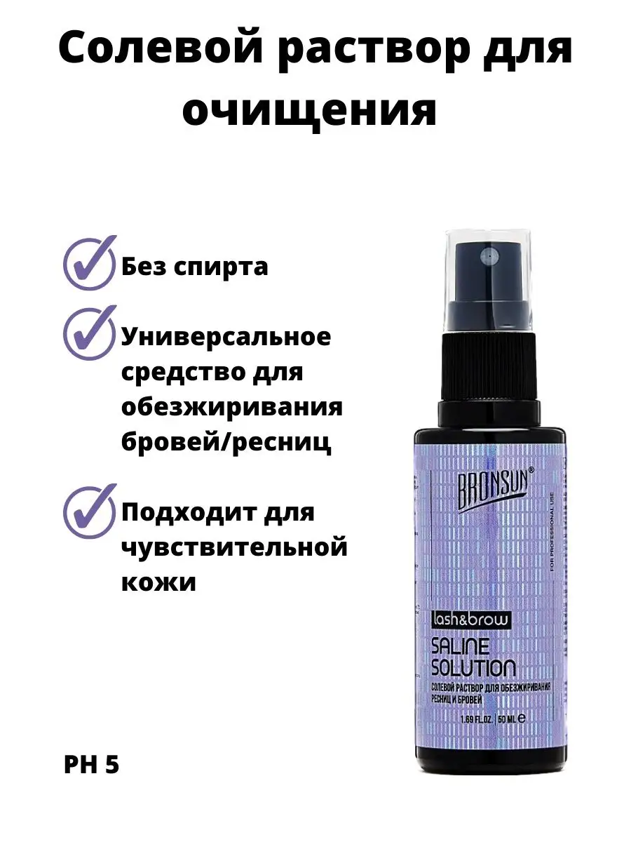 Раствор солевой для обезжиривания ресниц и бровей BRONSUN, 50 мл интересное: