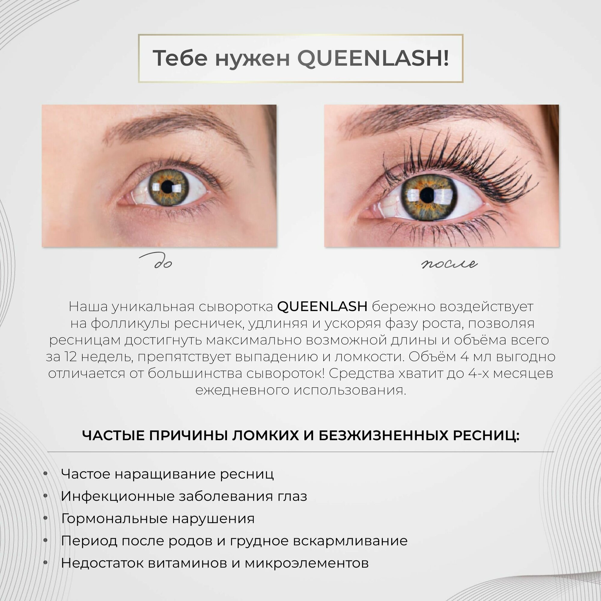 Премиум сыворотка для роста ресниц и бровей QUEENLASH 4ml, Квинлаш интересное: