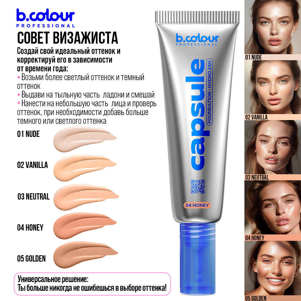 B.COLOUR PROFESSIONAL Тональный крем для лица матирующий, увлажняющий, стойкий CAPSULE 04 HONEY