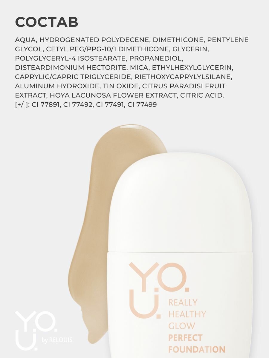 Основа тональная для лица Really Healthy Glow SPF20 Relouis Y.O.U. тон 1 Soft Beige интересное: