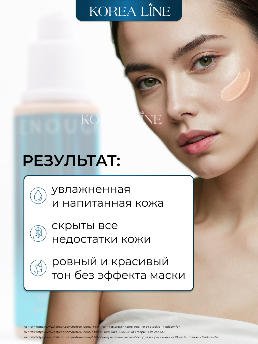| Дополнительная информация | Обновленный с новой формулой Тональный крем для лица увлажняющий с коллагеном ENOUGH - это многофункциональное средство для ухода за кожей лица, которое обеспечивает увлажнение, скрывает недостатки и создает естественный и безупречный тон. |