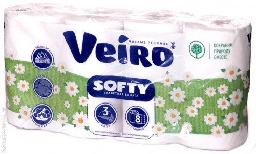 Туалетная Бумага Veiro 3 слоя . 8шт большая намотка 30 метров белая интересное: