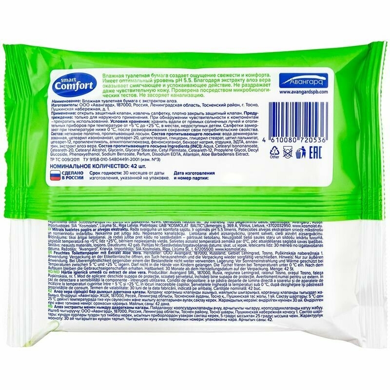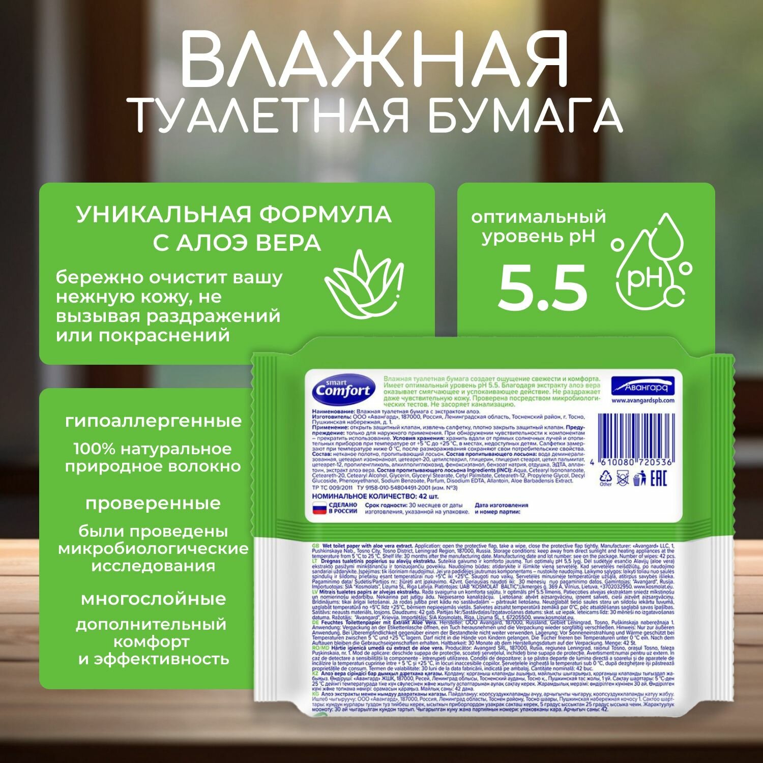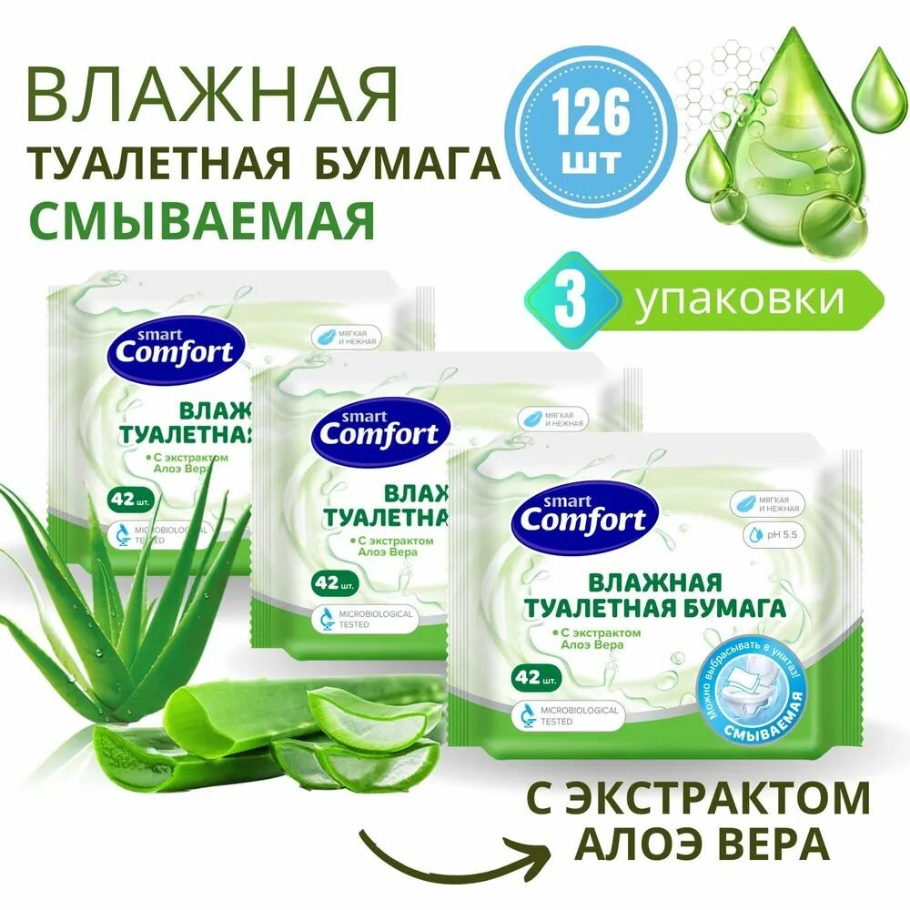 Влажная туалетная бумага Comfort smart с экстрактом алоэ вера 42 лист. 1 упаковка интересное: