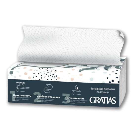 Полотенца бумажные Gratias V-сложения двуслойные, 100шт интересное: