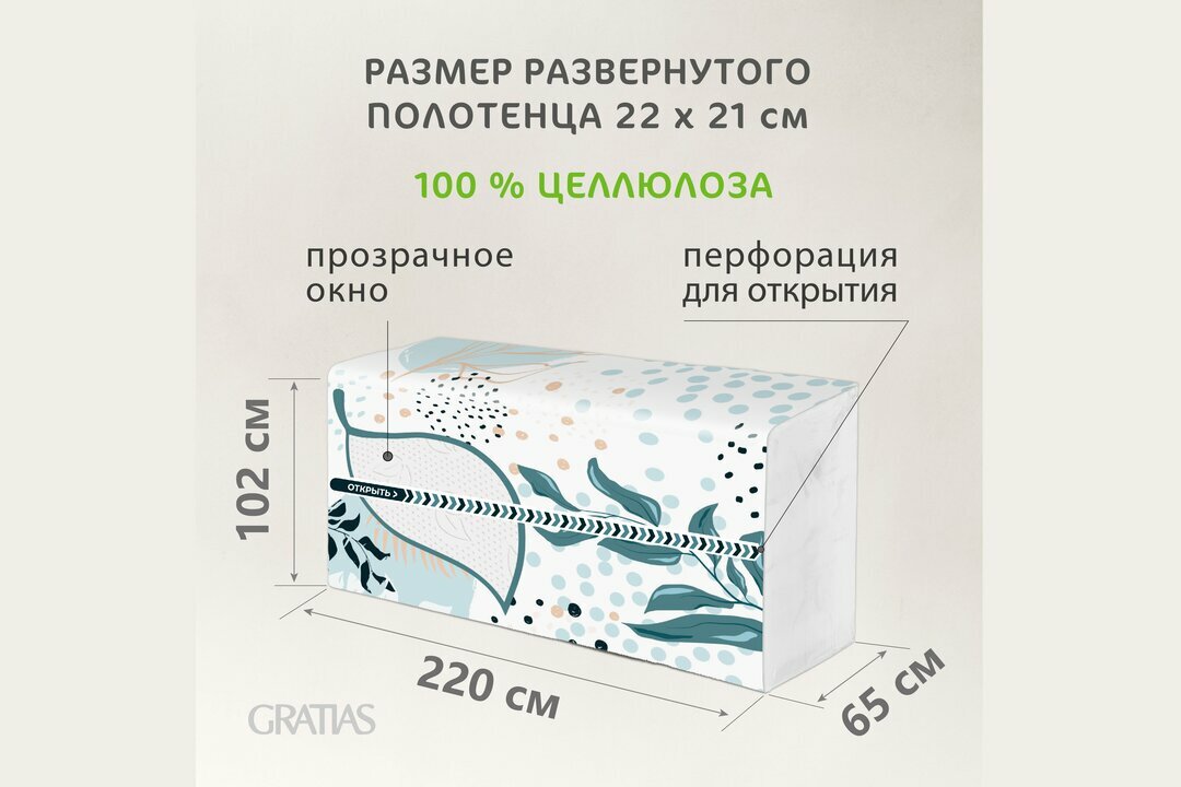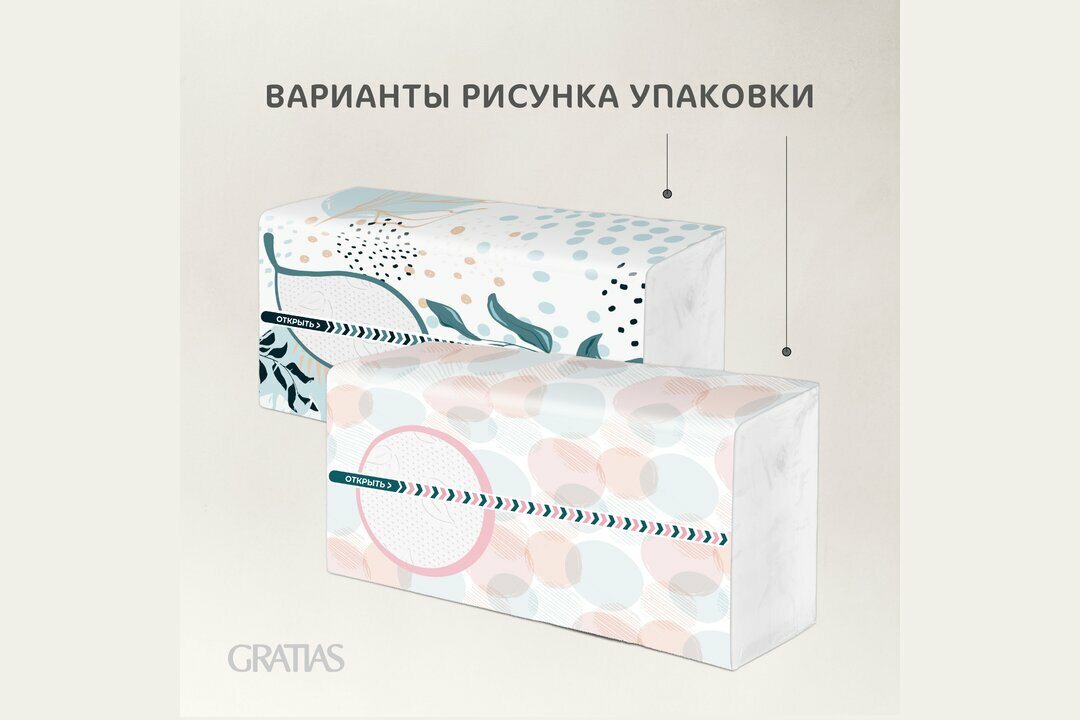 Полотенца бумажные листовые Gratias с центральной вытяжкой V-сложения, 100 листов, микс (два дизайна пленки)