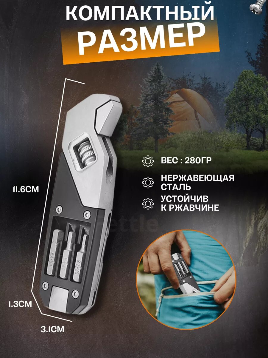 "Fettle Мультитул" - универсальный гаечный ключ с набором бит на 13 насадок и 16 функций интересное: