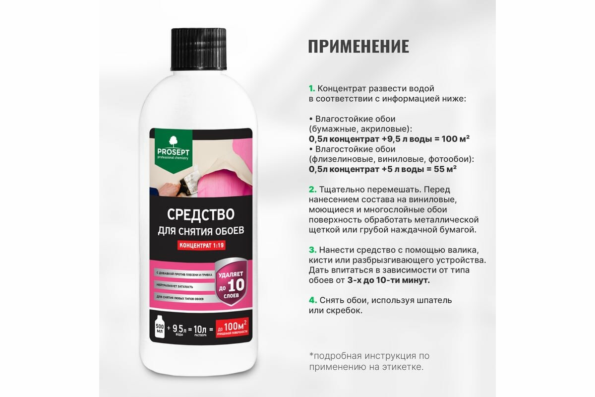 Средство для снятия обоев Prosept концентрат 1:19 (0,5л) интересное: