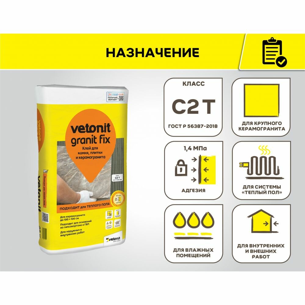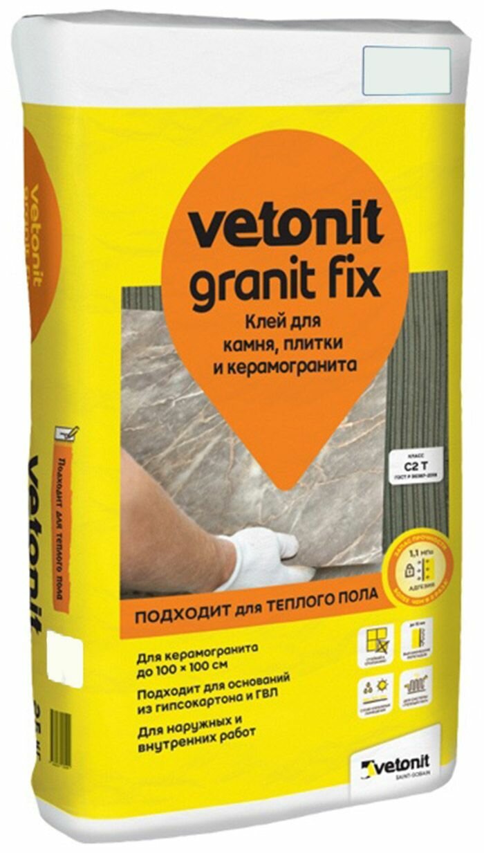 Ветонит Гранит Фикс С2 клей для керамогранита (25кг) / VETONIT Granit Fix С2 клей для камня, плитки и керамогранита для наружных и внутренних работ (2 интересное: