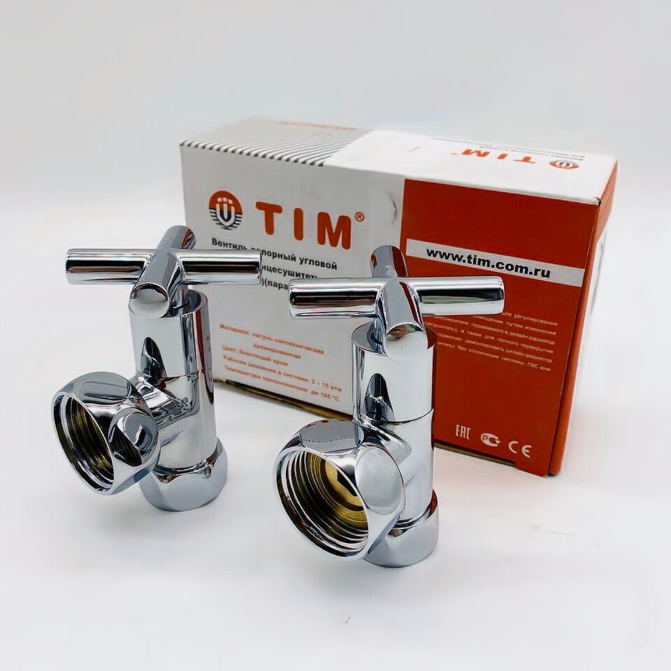 Купить Вентиль запорный угловой для полотенцесушителя/крестовой 1"ВРx1/2"ВР/пара TIM арт. KV10-LFF042