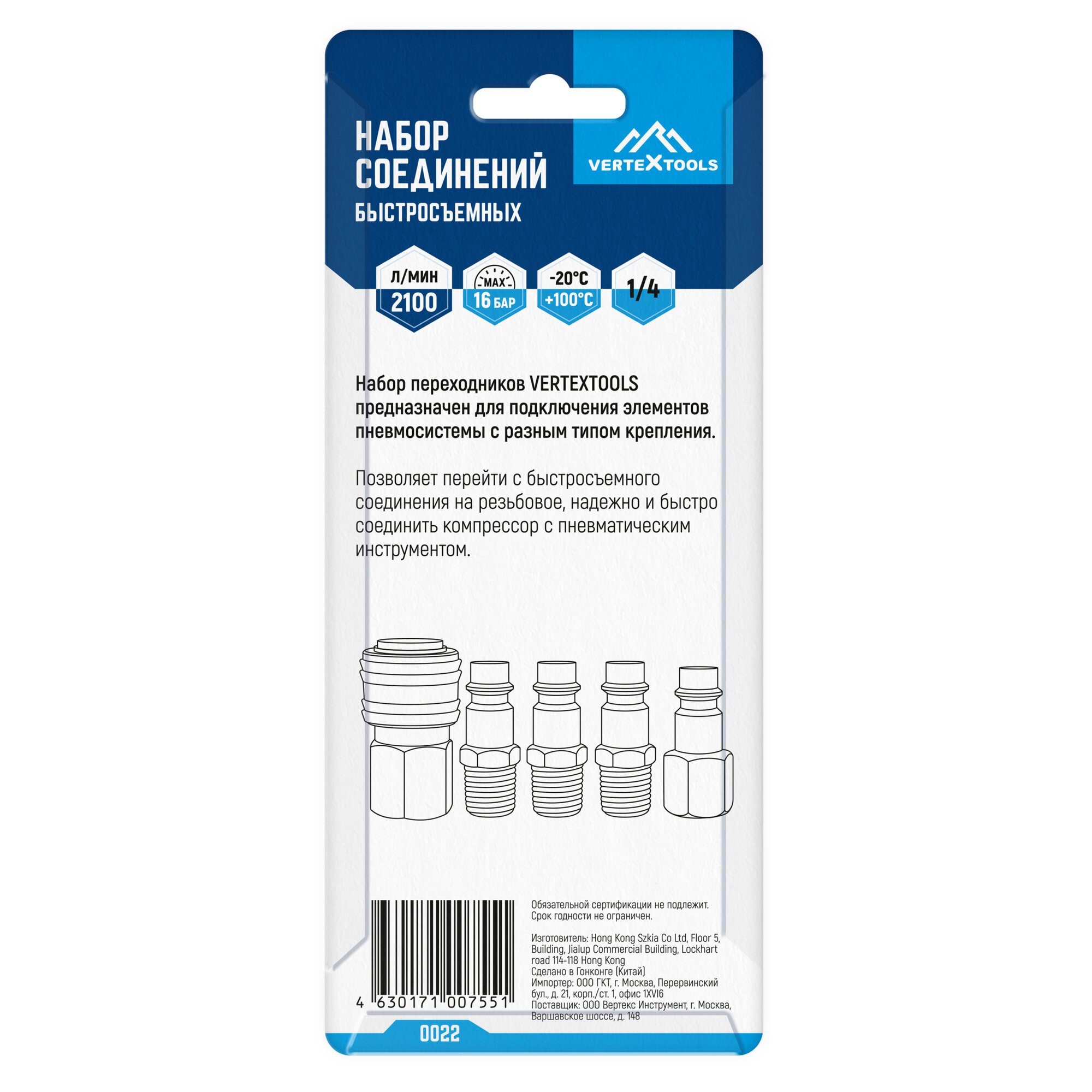 Набор быстросъёмных соединений VertexTools 5 шт интересное: