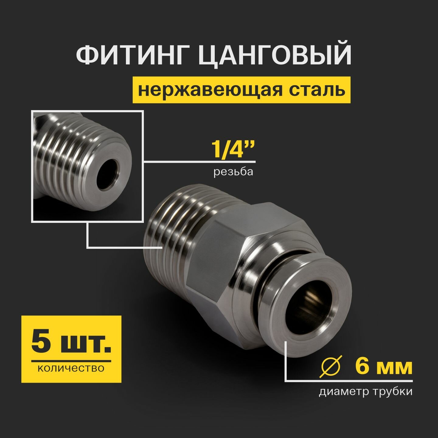 Купить Фитинг цанговый прямой из нержавеющей стали (наружная резьба) 1/4", 6 мм - 5 шт.