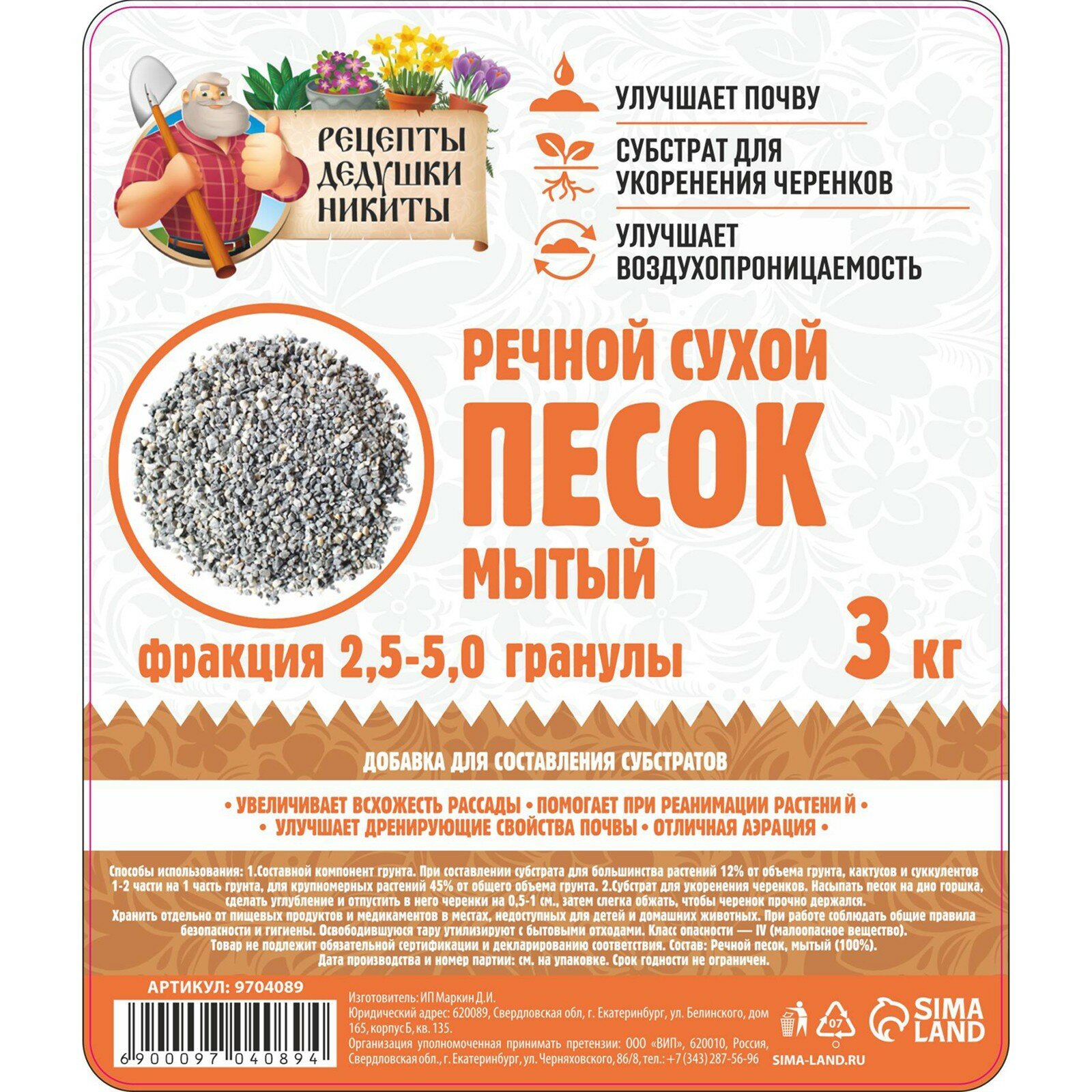 Речной песок "Рецепты дедушки Никиты", сухой, фр 2,5-5,0, гранулы, 3 кг интересное: