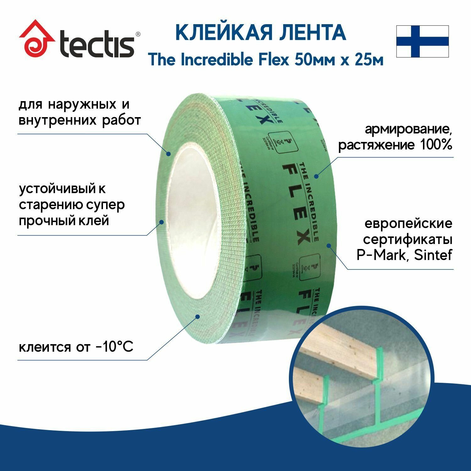 Клейкая лента Tectis The Incredible Flex, Sitko TIF, 50mm*25m для проклейки пароизоляции и мембраны, армированный монтажный скотч интересное:
