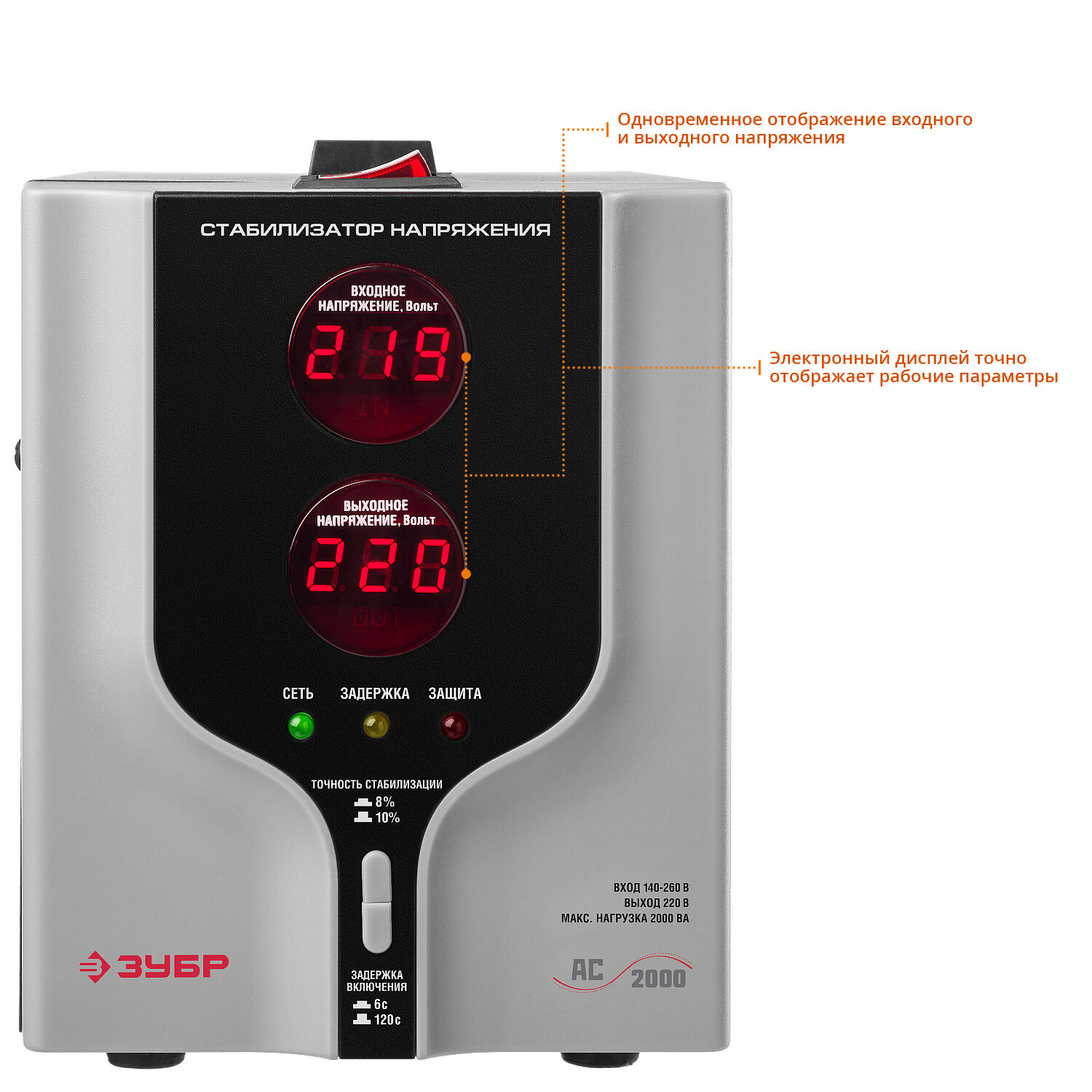 ЗУБР АС 2000 профессиональный стабилизатор напряжения 2000 ВА, 140-260 В, 8% (59375-2)