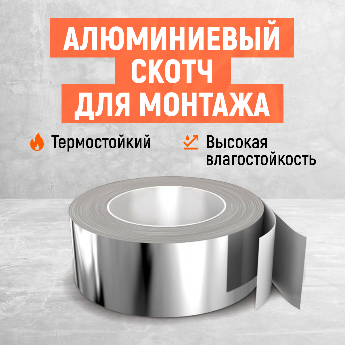 Алюминиевый термостойкий скотч. 50 метров! Прочный! Толщина-50 мкм. Алюминиевая клейкая лента! интересное: