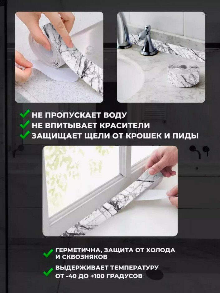 Ниже Вы можете прочитать отзывы на Лента бордюрная мрамор, водонепроницаемая длина 3.2м., ширина 3.8см. Защита от воды, жира, грязи, плесени, ознакомится с подробными характеристиками, посмотреть интересные обзоры и фотографии на Лента бордюрная мрамор, водонепроницаемая длина 3.2м., ширина 3.8см. Защита от воды, жира, грязи, плесени.