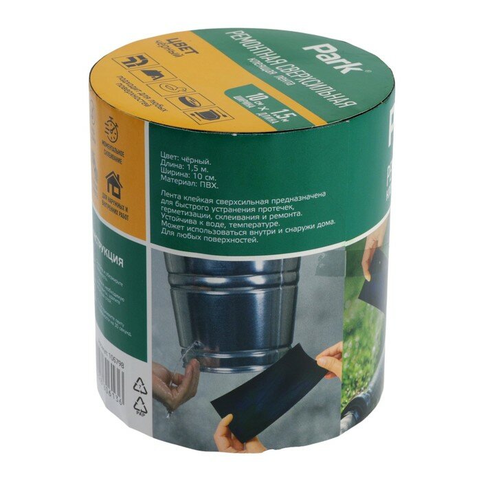 Ремонтная сверхсильная клеящая лента от протечек, черная, 1,5м, ширина 10см