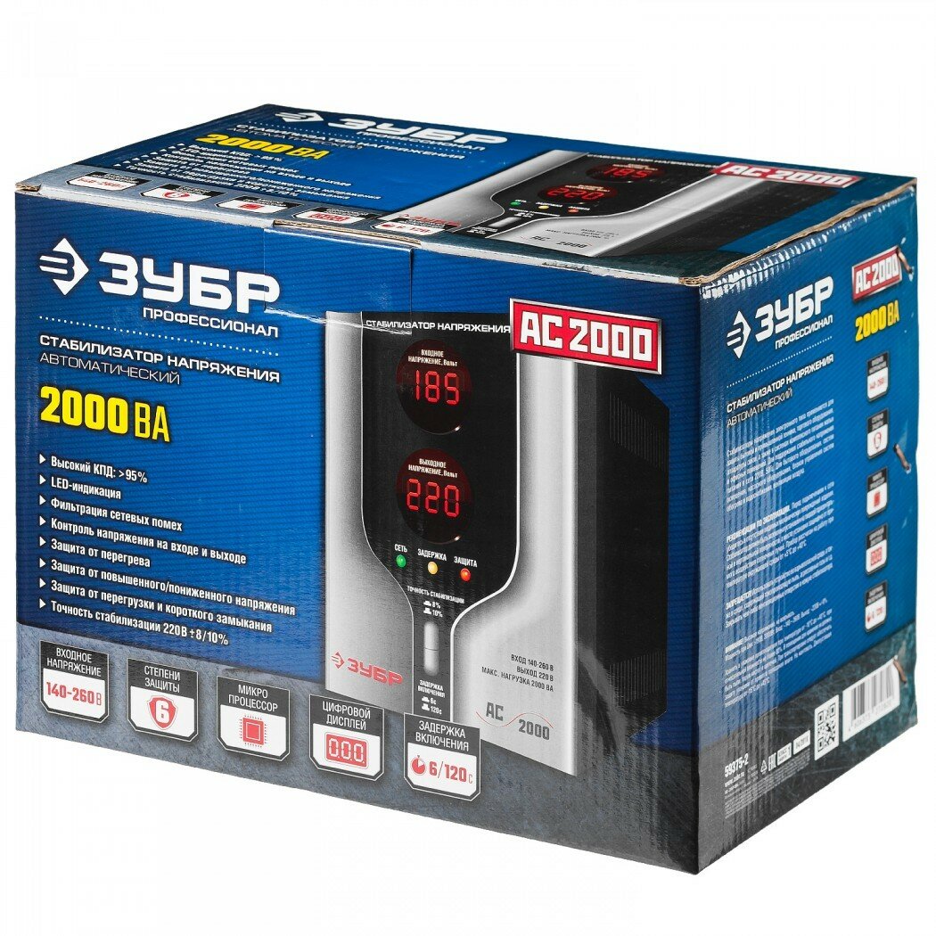 ЗУБР АС 2000 профессиональный стабилизатор напряжения 2000 ВА, 140-260 В, 8%, 59375-2