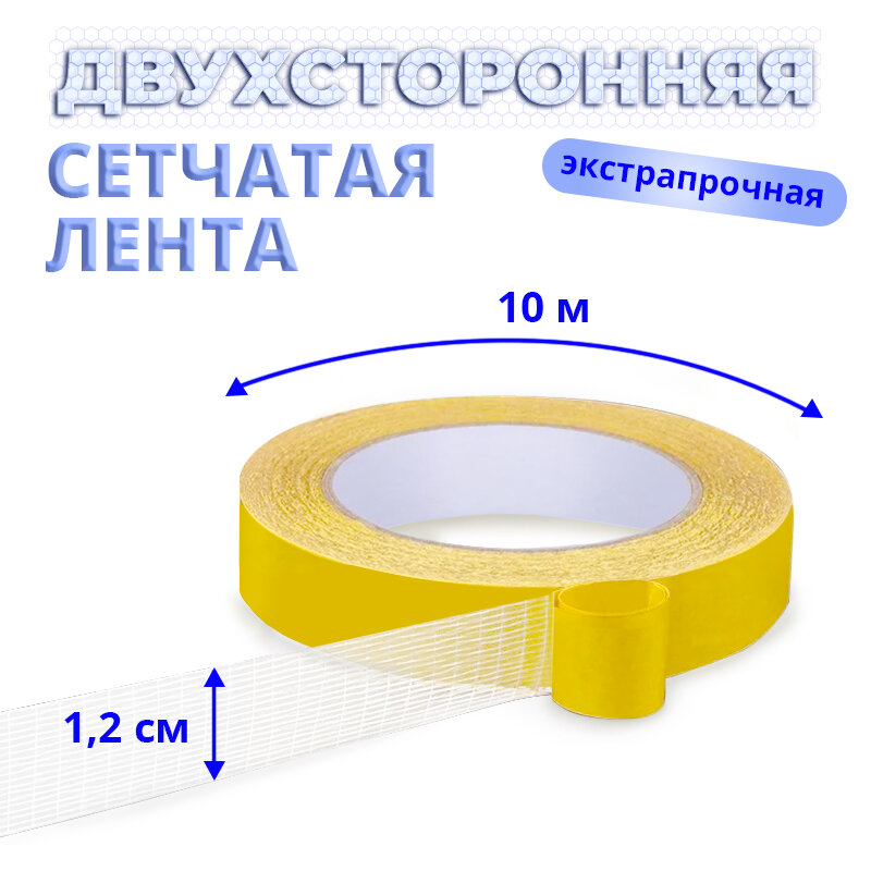 Купить Двухсторонняя сетчатая самоклеящаяся крепежная лента 12мм*10м