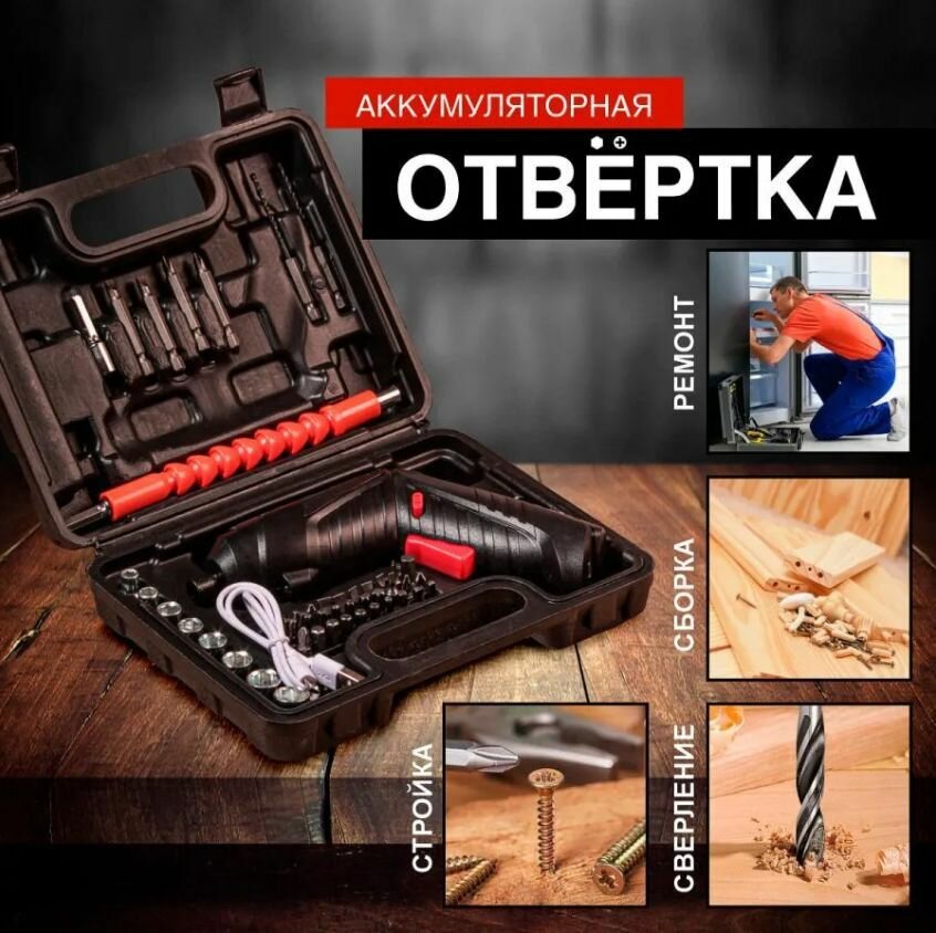 Аккумуляторная отвертка 45 насадок, Lithium Screwdriver VertoX интересное:
